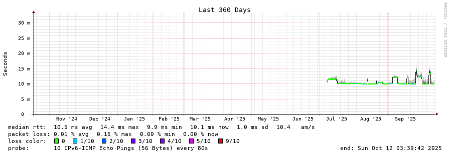traceroute to ns1.gcorelabs.net (2a03:90c0:9990::1053), 30 hops max, 80 byte packets - Generated at 2025-10-11 23:30:01