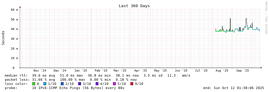 traceroute to 2001:35c0::204:27:68:152 (2001:35c0::204:27:68:152), 30 hops max, 80 byte packets - Generated at 2025-10-11 23:30:01