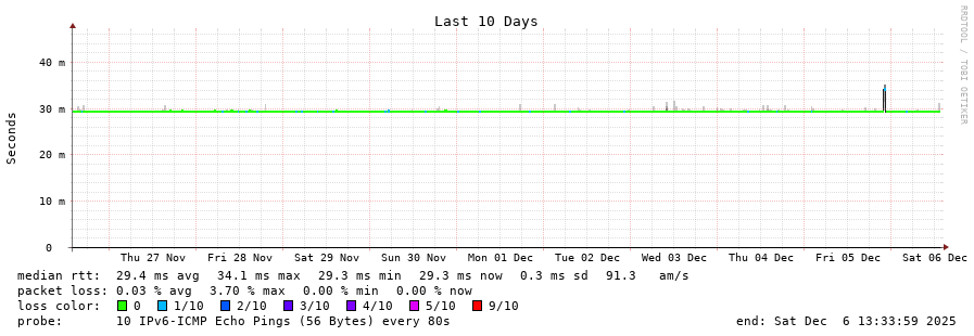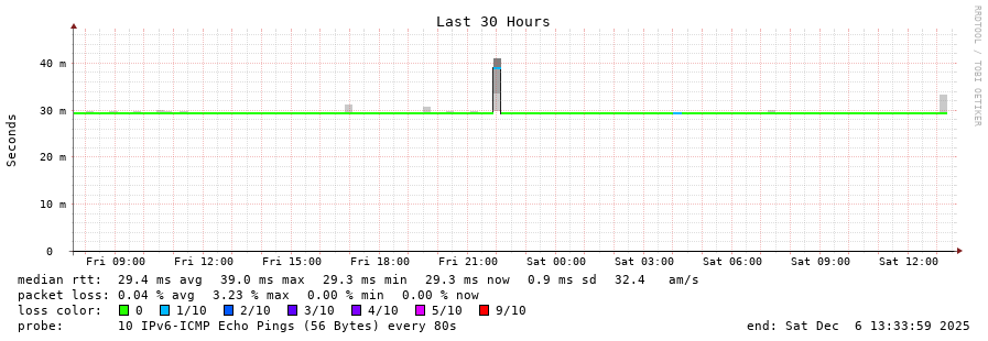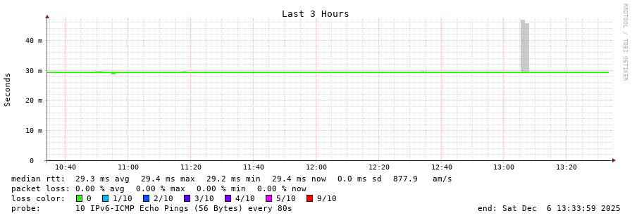 traceroute to 2a00:c30:bbbb:d::2 (2a00:c30:bbbb:d::2), 30 hops max, 80 byte packets - Generated at 2025-12-06 13:30:01