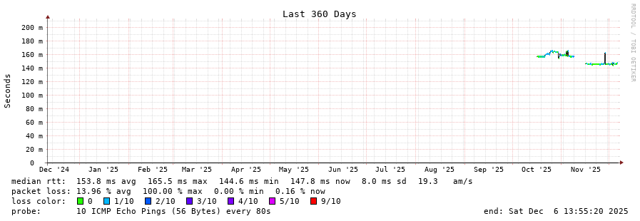 traceroute to 190.8.164.97 (190.8.164.97), 30 hops max, 60 byte packets - Generated at 2025-12-06 13:30:01