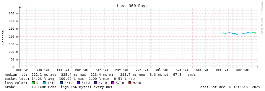 traceroute to 131.100.158.39 (131.100.158.39), 30 hops max, 60 byte packets - Generated at 2025-12-06 13:15:01