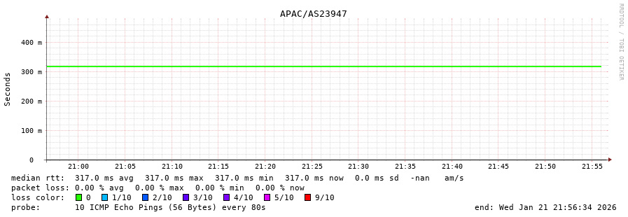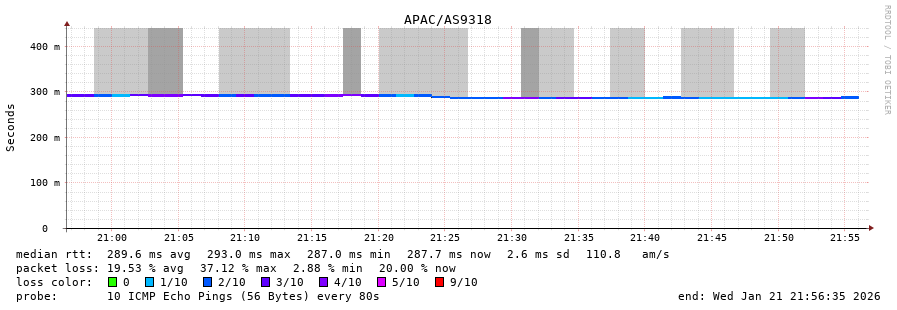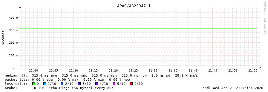 21. Median RTT 0.310 seconds